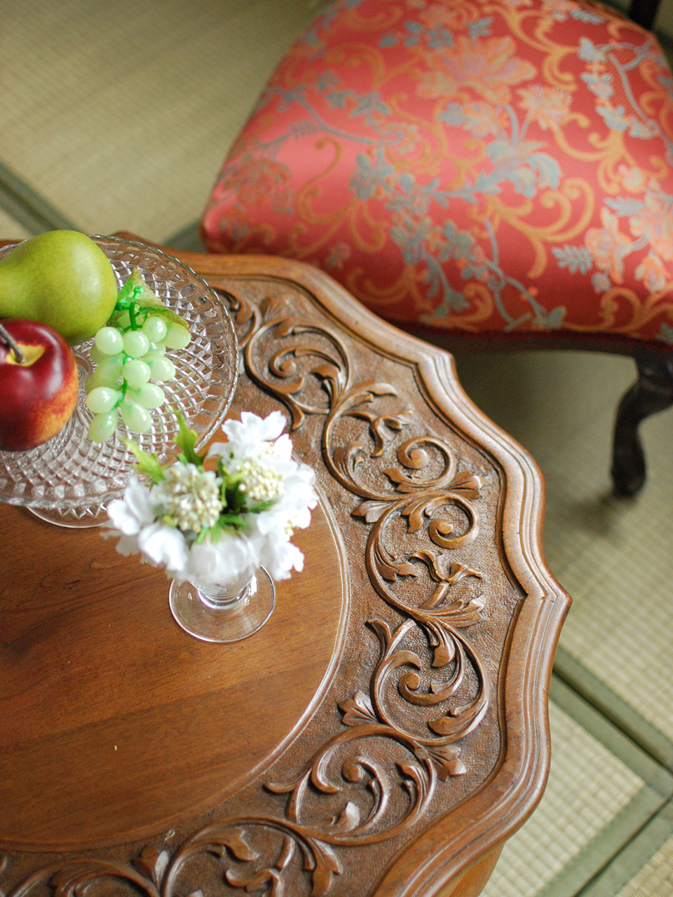 日本ならどこにでもある和室をフレンチアンティークとコラボさせてみました。
