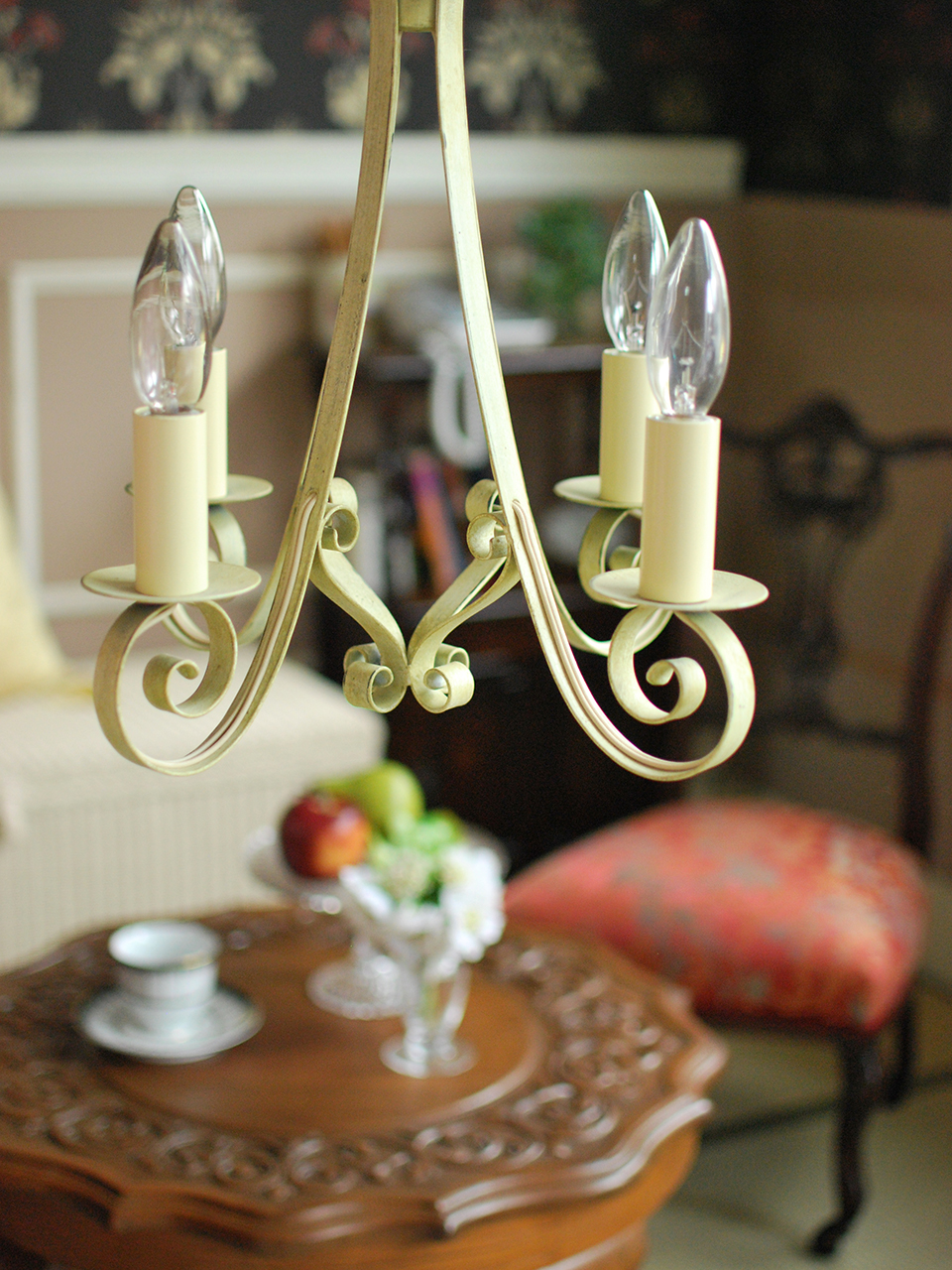 主張しすぎることなく馴染む、白いアイアンのシャンデリアを組み合わせました。