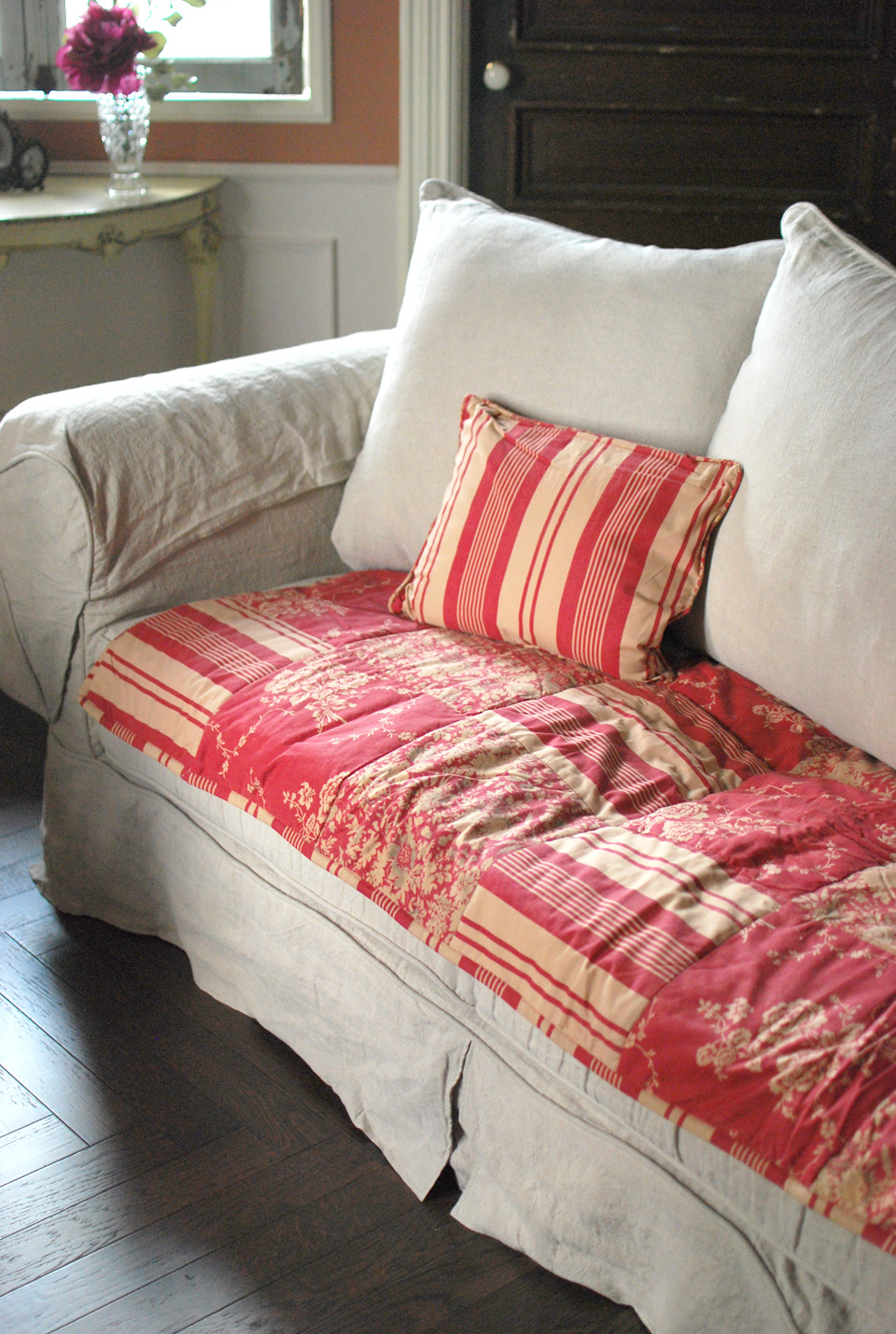 あっと言う間に秋を演出したいなら、いつものソファに赤いカバーを掛けるだけ。