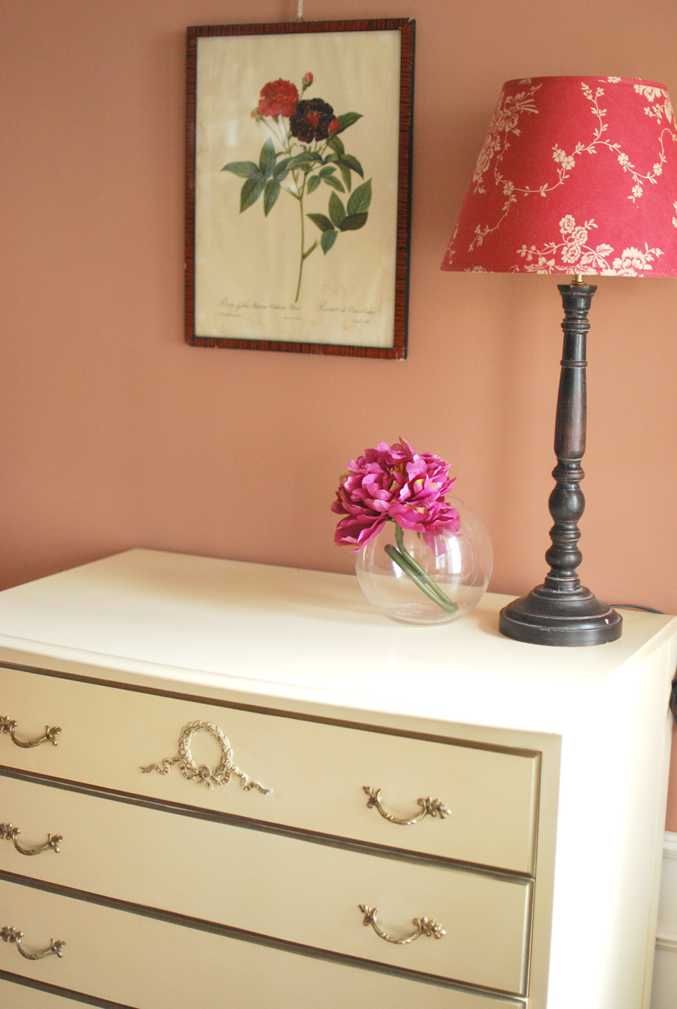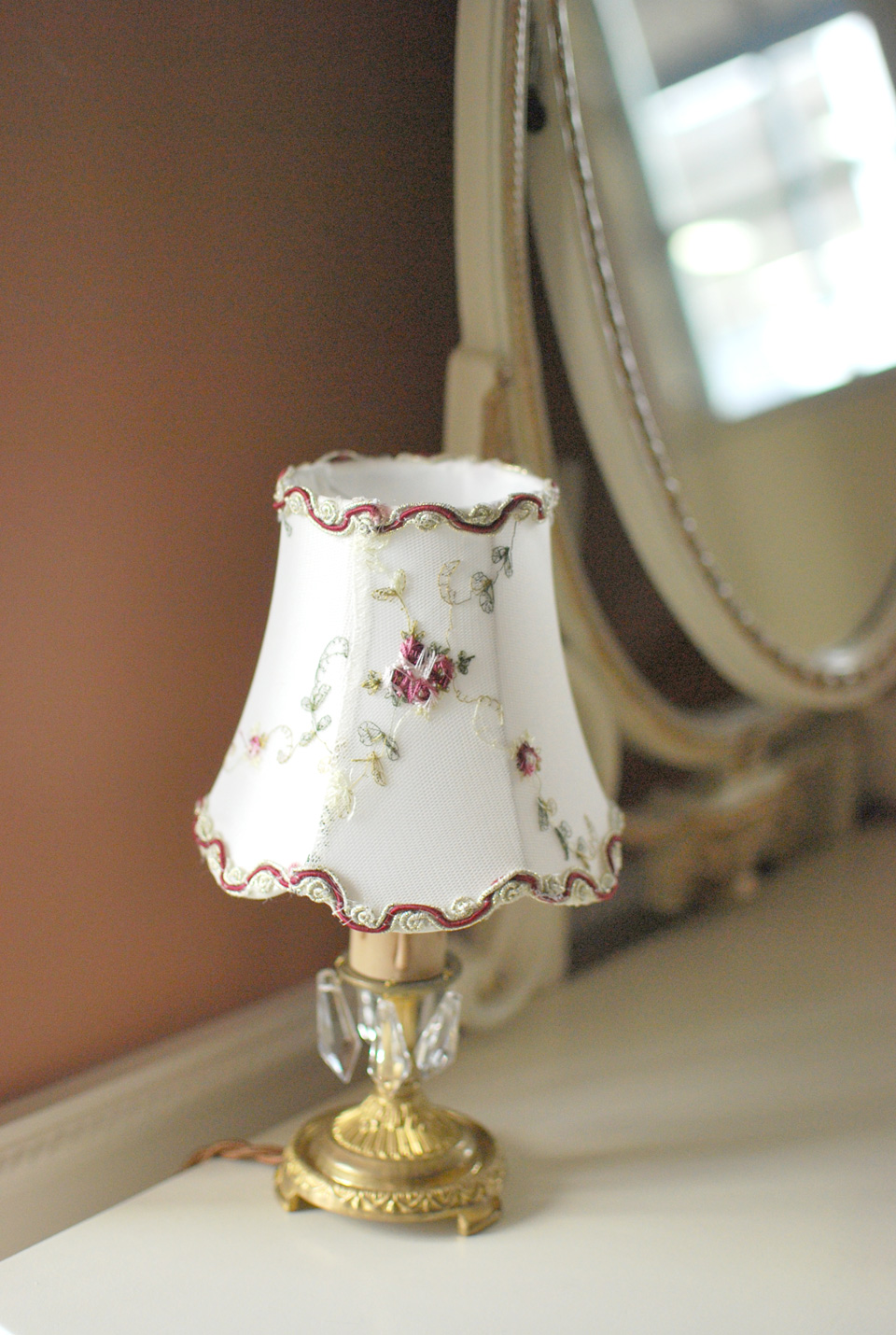さりげなくお花が刺繍を入れたテーブルランプのシェードをセレクト。