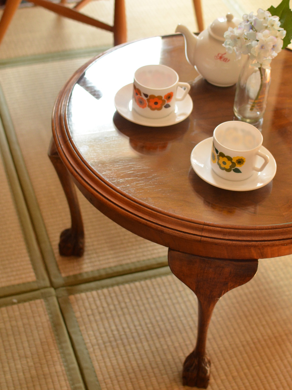 猫脚のコーヒーテーブルは、和室にもさらりと馴染みます。