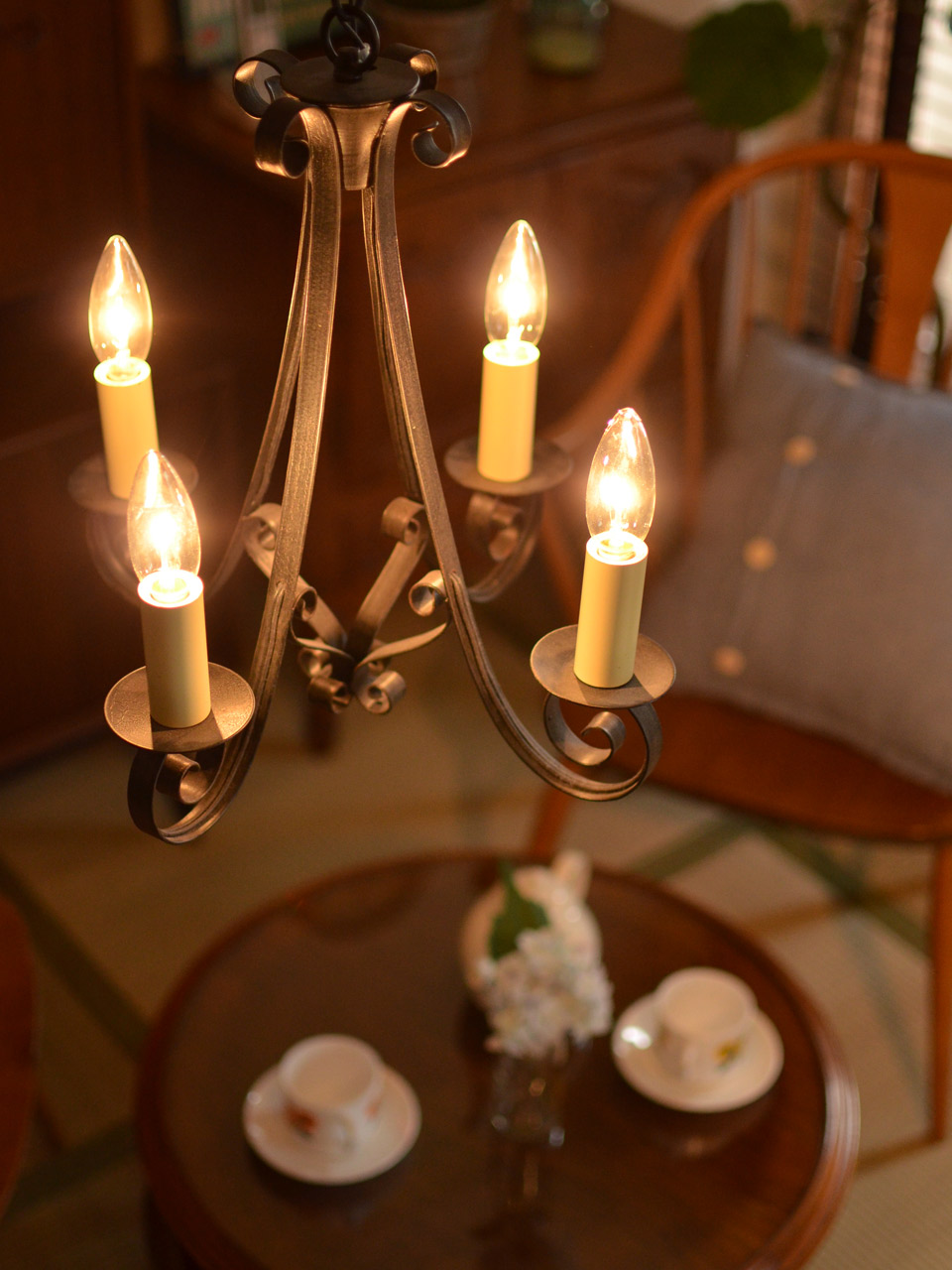 仕上げのシャンデリアは、シンメトリーの4灯黒で。