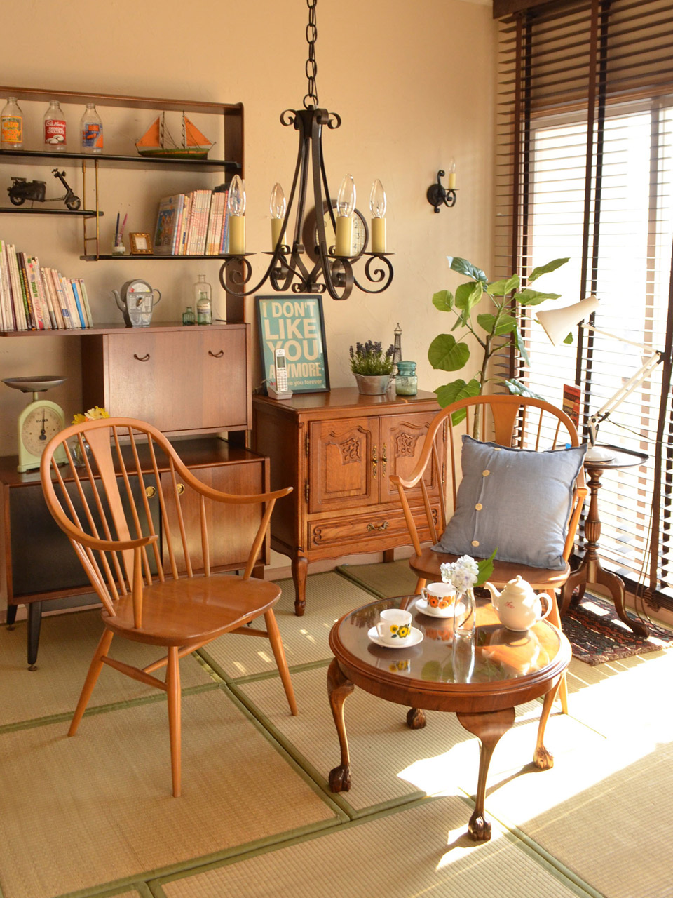 今回は、どこにでもある和室とヴィンテージ家具をコラボさせた、